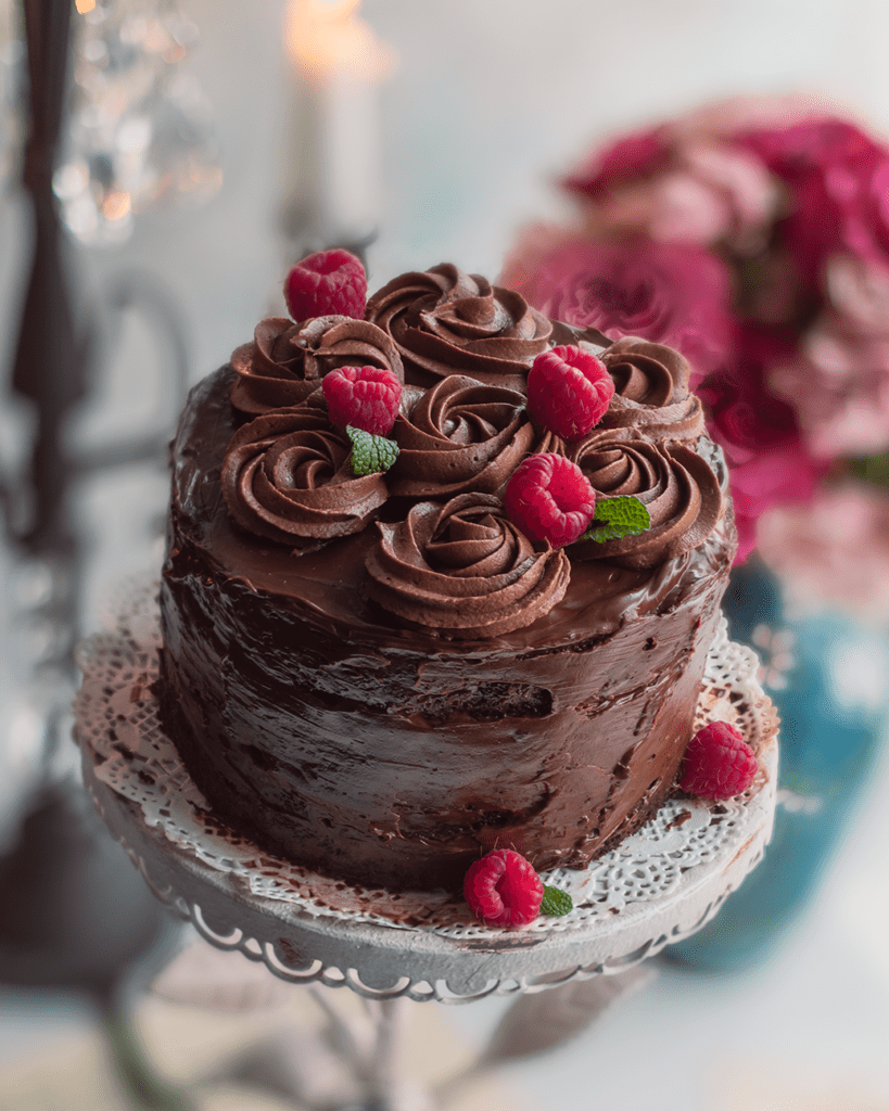I indulged on my birthday—I made the most decadent cake I could possibly make, given the limitation of using just three six-inch pans. It had to be small because I didn’t have too many people to share it with, but I made it rich, moist, and extremely chocolatey. I filled it with a raspberry fruit spread, because I absolutely adore the combination. I adore raspberries.
