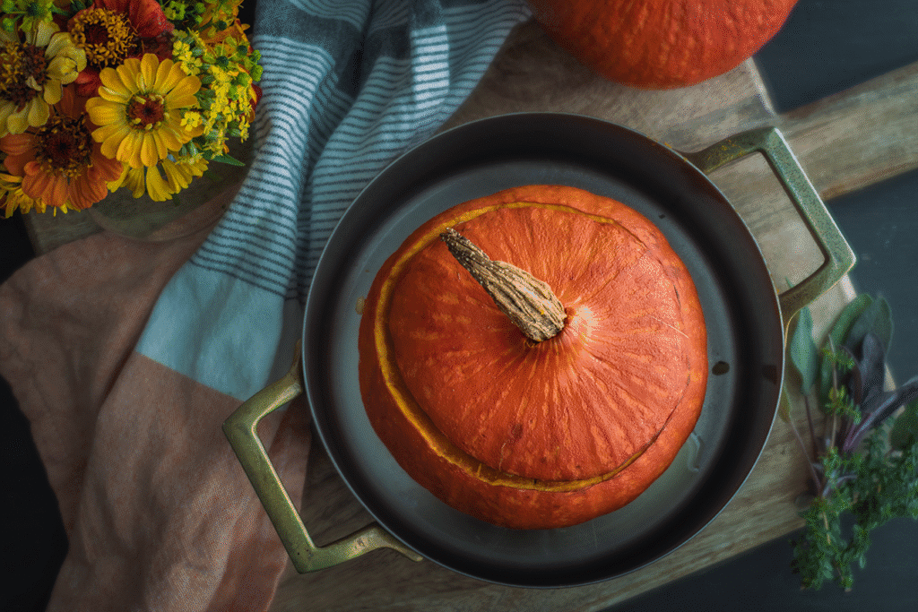 Bake for about 1-½ hours or until the pumpkin shell is fork-tender.